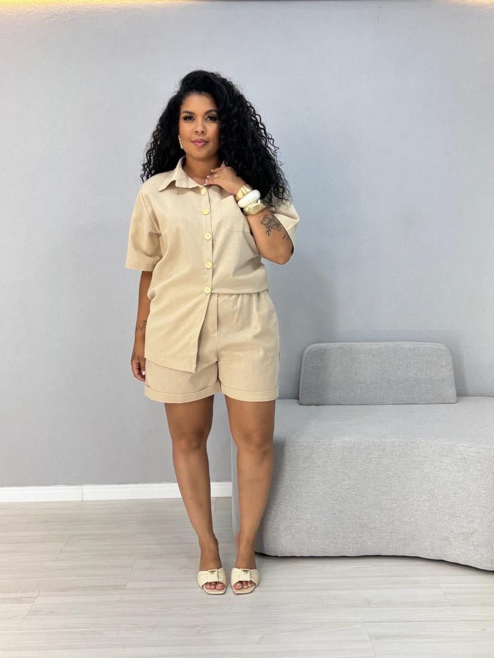 CONJUNTO CAMISA E SHORTS LINHO NUDE 1000N2