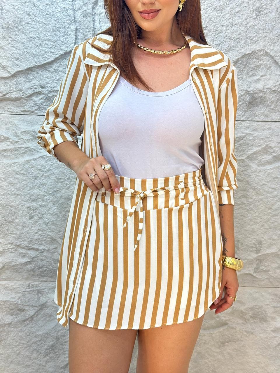 CONJUNTO CAMISA E SHORTS SAIA CARAMELO 1000G7