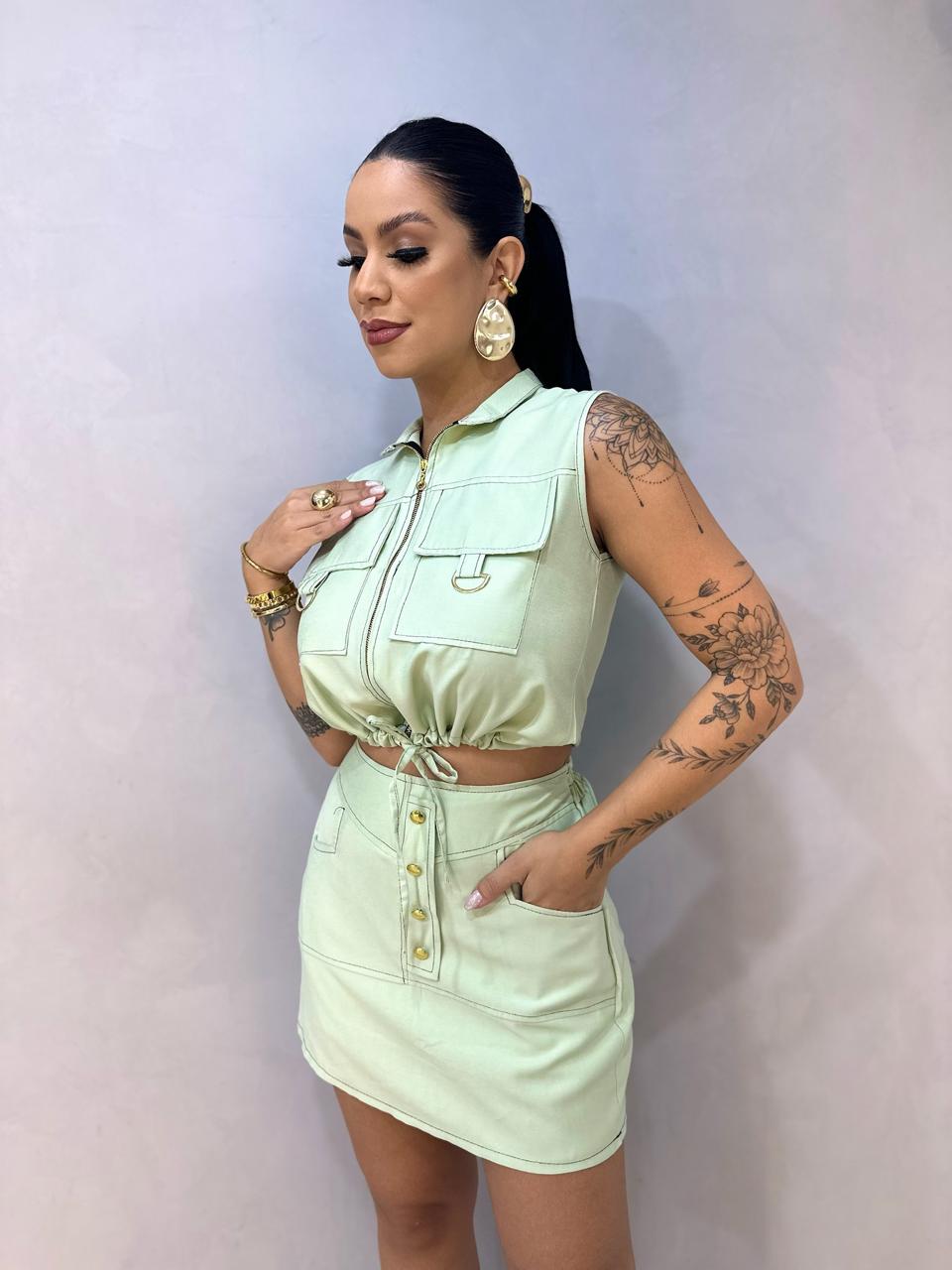 CONJUNTO CARGO SHORTS SAIA VERDE