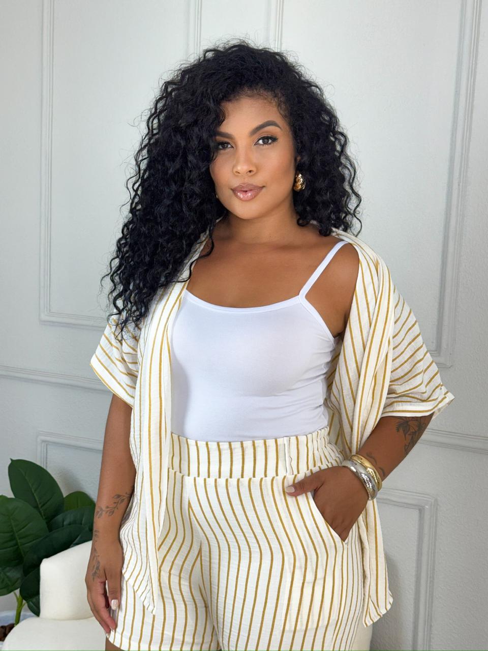 Manequim 44/46 Midsize (conjunto listras mostarda)