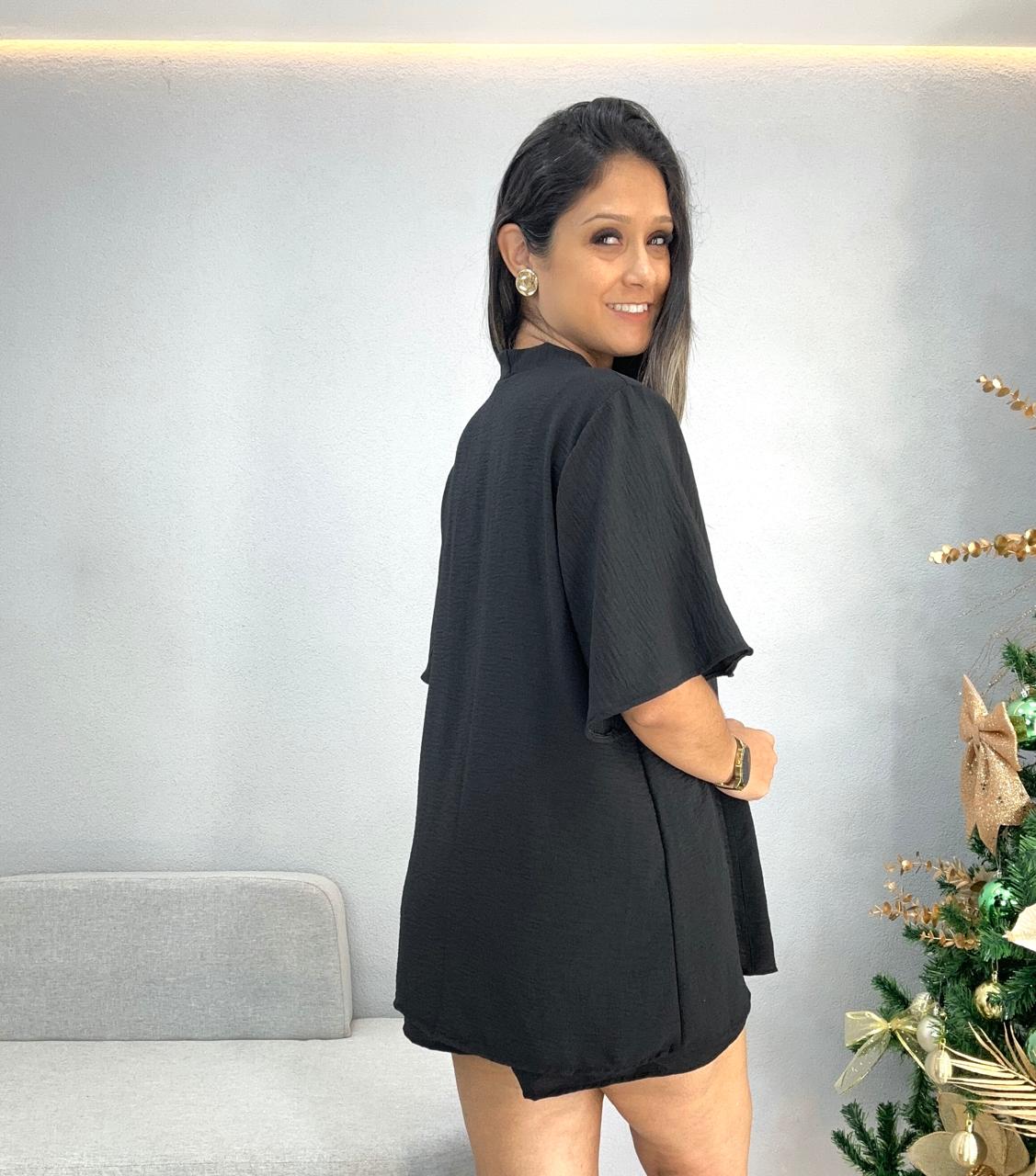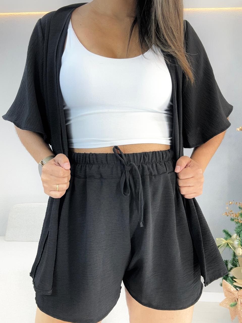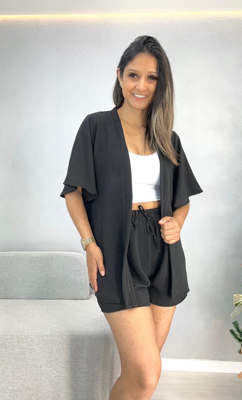 CONJUNTO SHORTS E KIMONO PRETO 1000I6