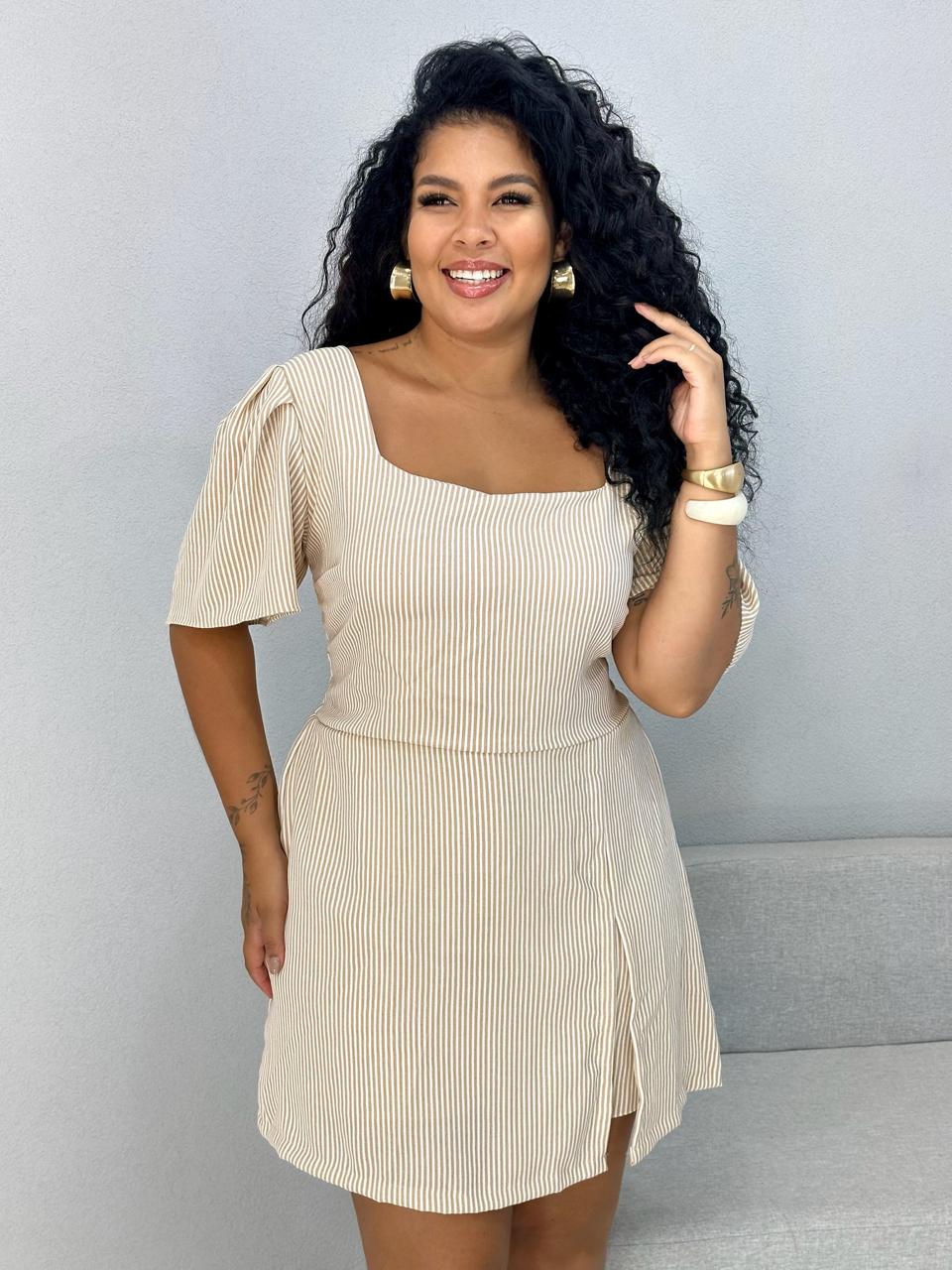 Busto 87 cm (possui lastex nas costas que estica e ajusta no corpo), cintura 80 cm, quadril 99 cm e comprimento 84 cm;