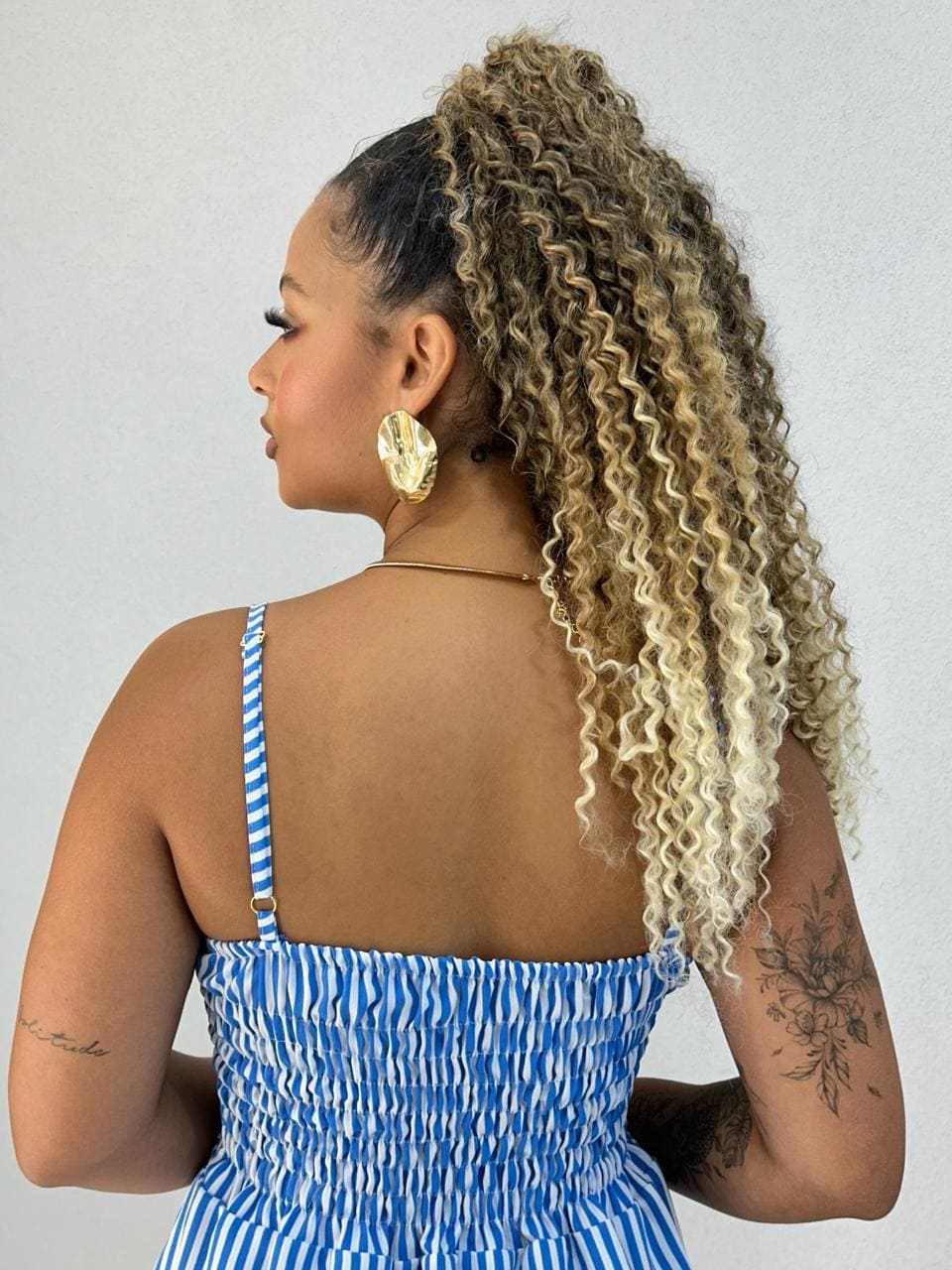 Busto 70 cm (possui lastex nas costas que estica e ajusta no corpo), cintura 64 cm, quadril 100 cm e comprimento 80 cm;