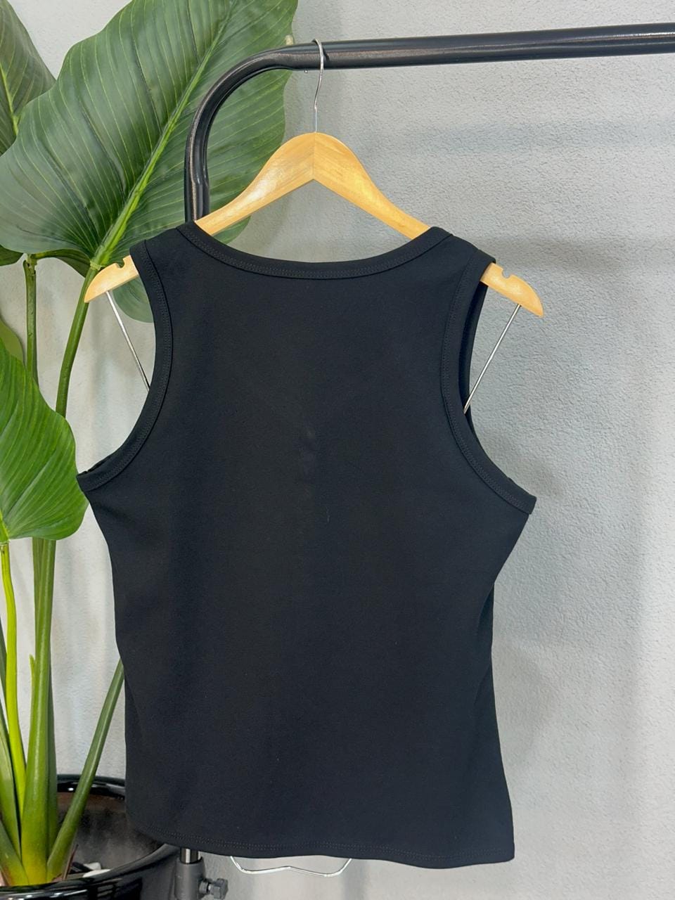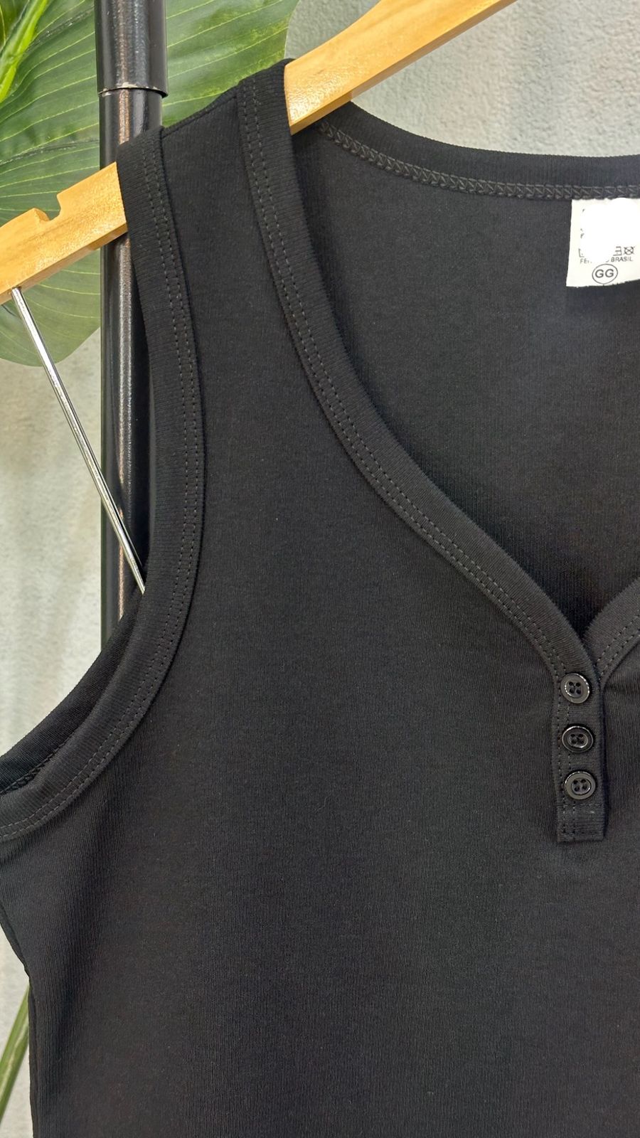 REGATA CANELADA BÁSICA 3 BOTÕES PRETO 1000M3