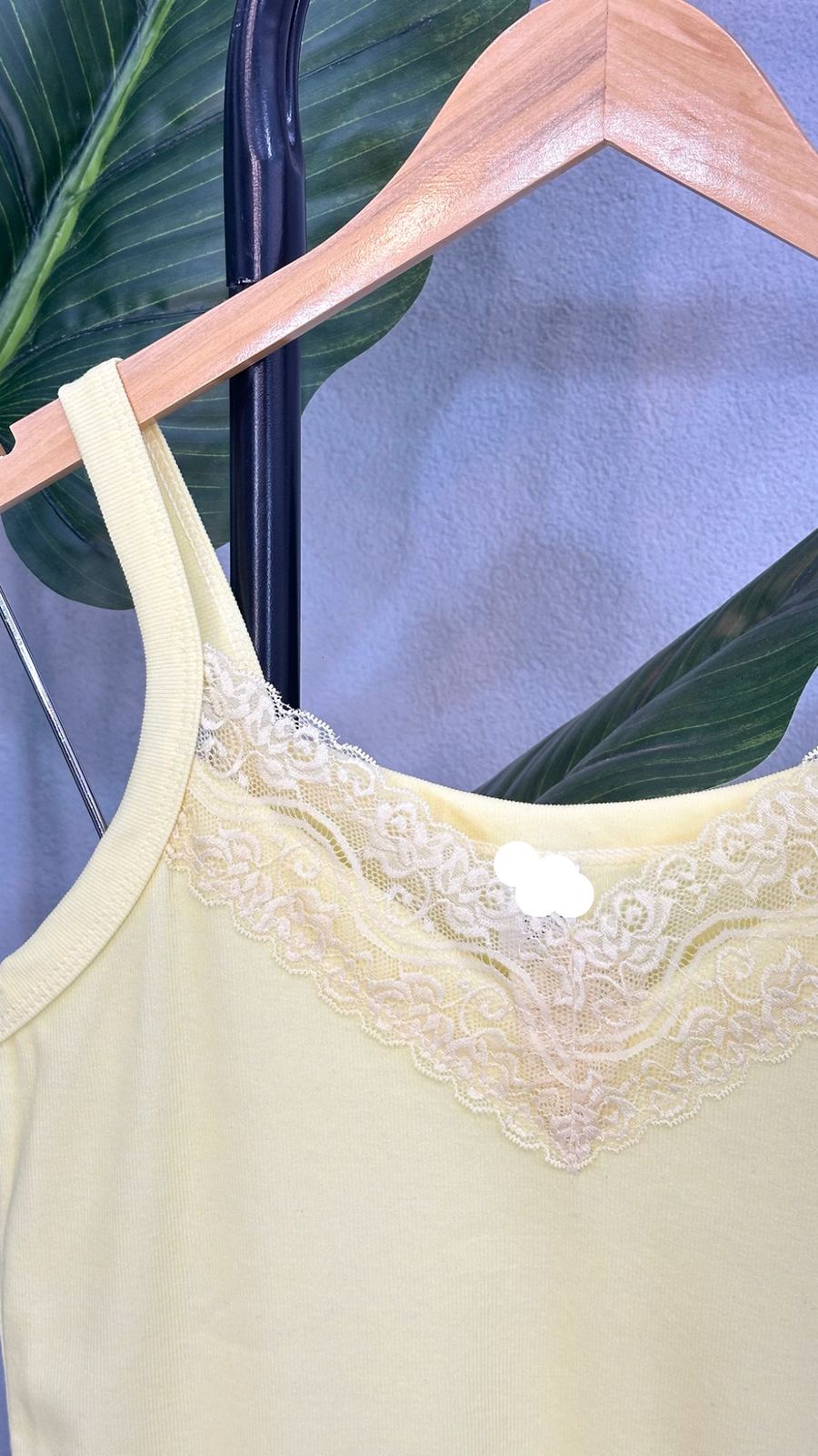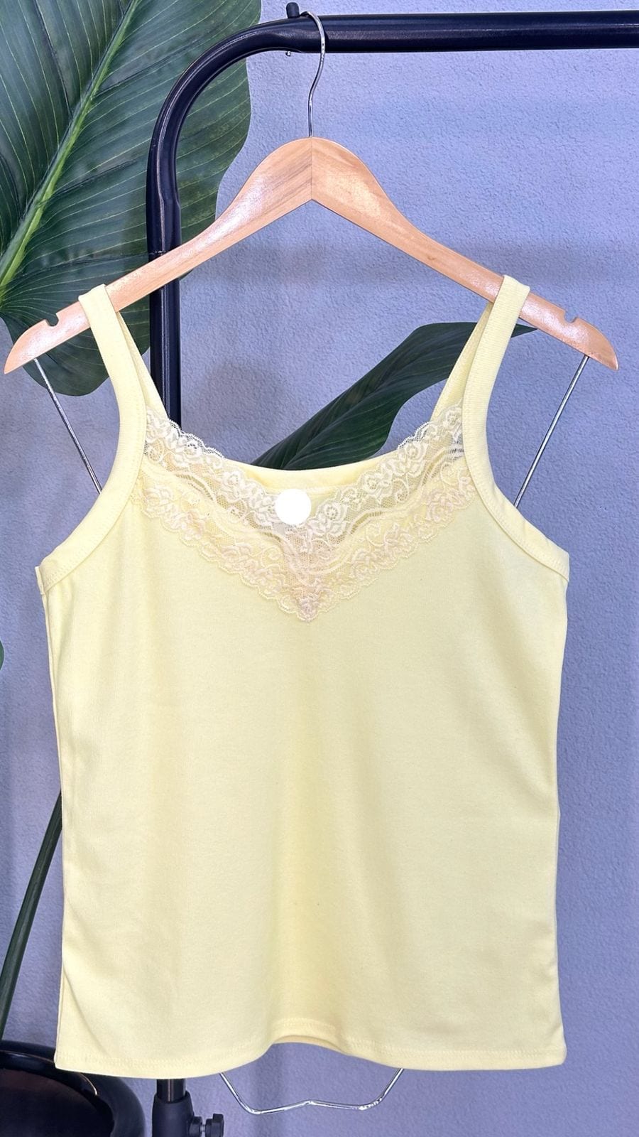 REGATA CANELADA COM RENDA AMARELO BEBÊ 1000M2