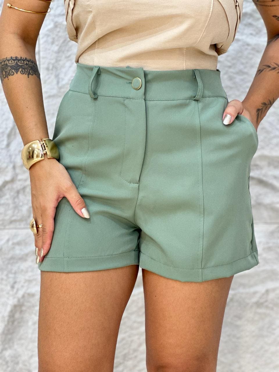 SHORTS BOTÃO ENCAPADO VERDE 1000I3