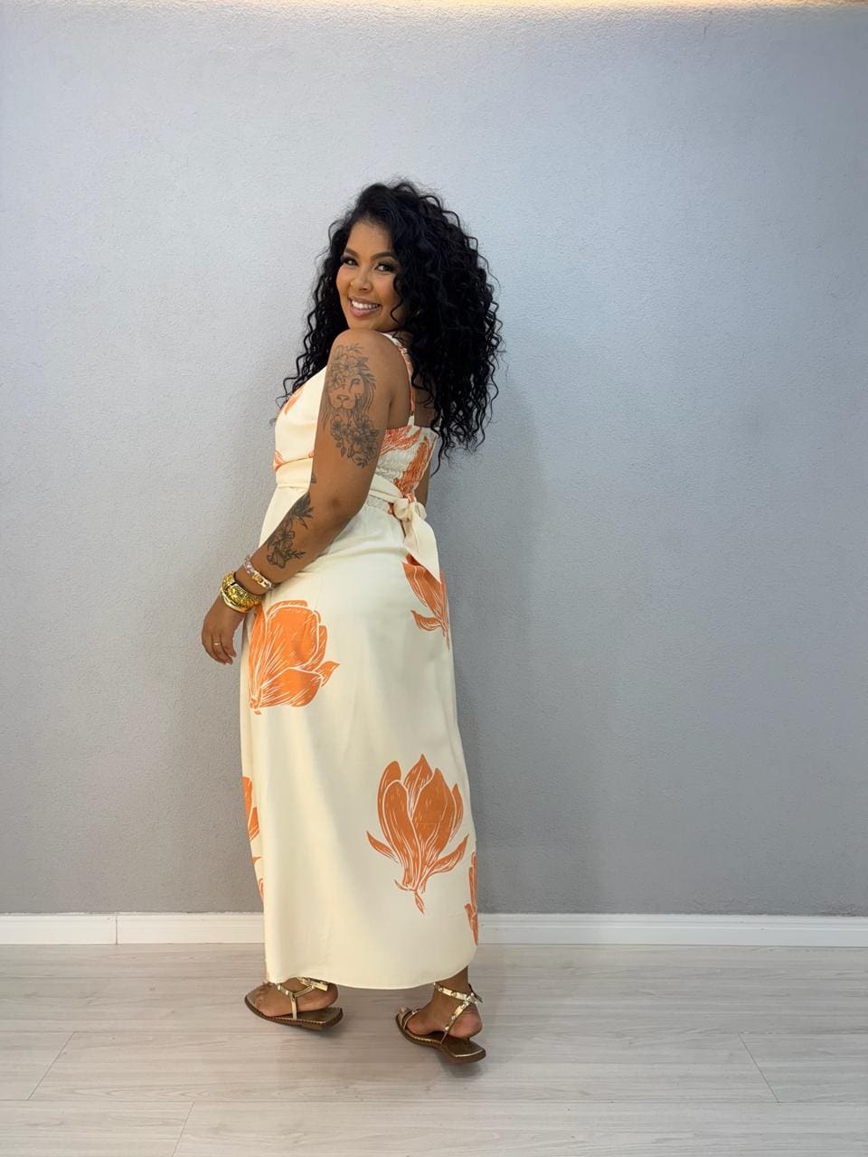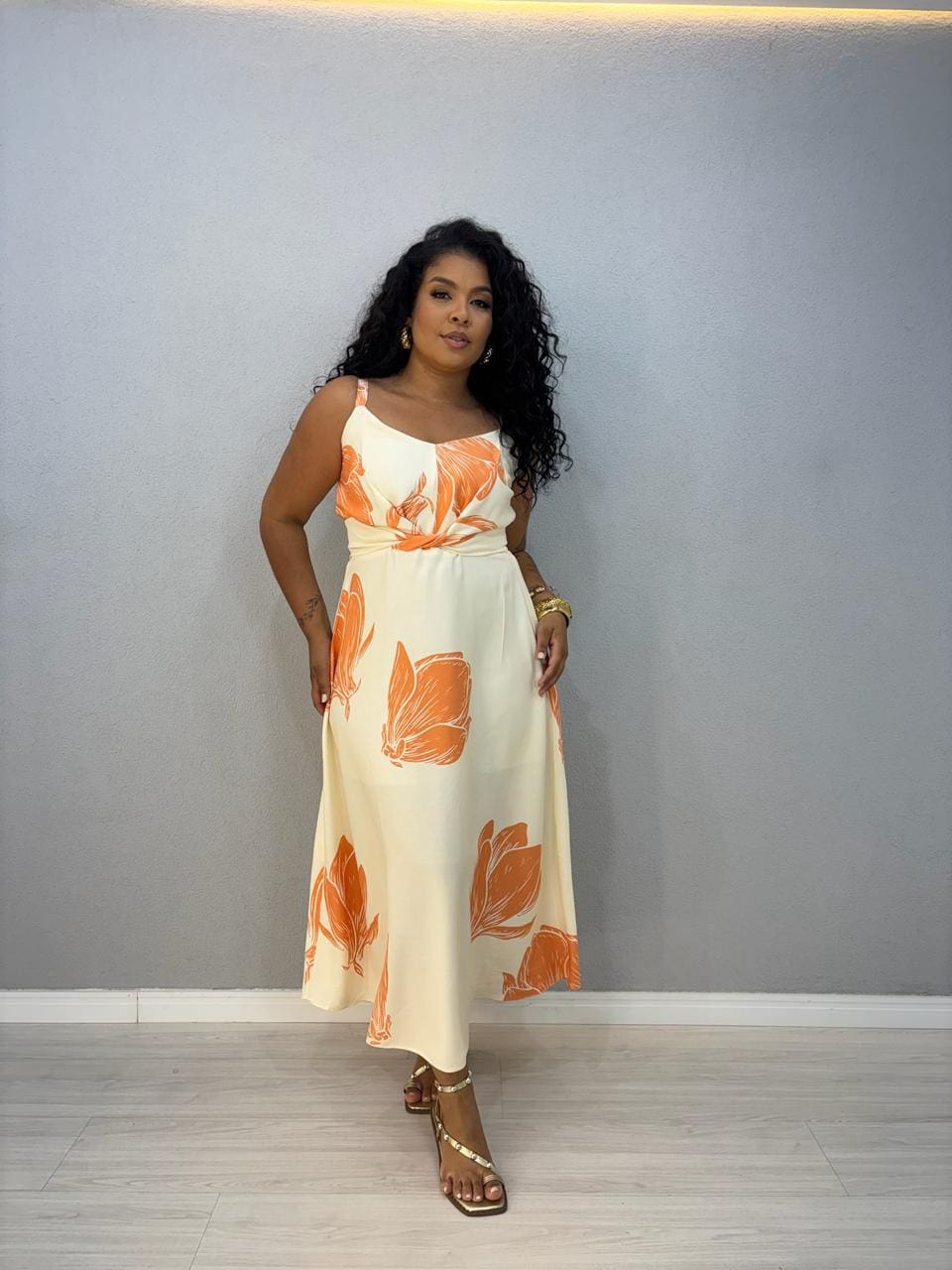 VESTIDO MIDI FOLHAGEM LARANJA 1000L2