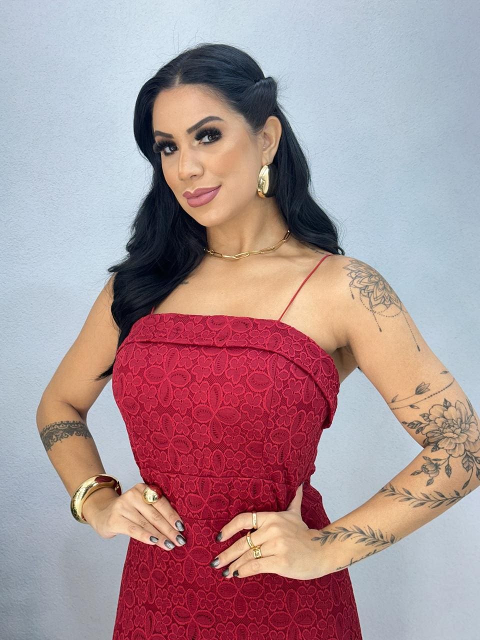 VESTIDO RENDA ALÇA FINA MARSALA 1000B1