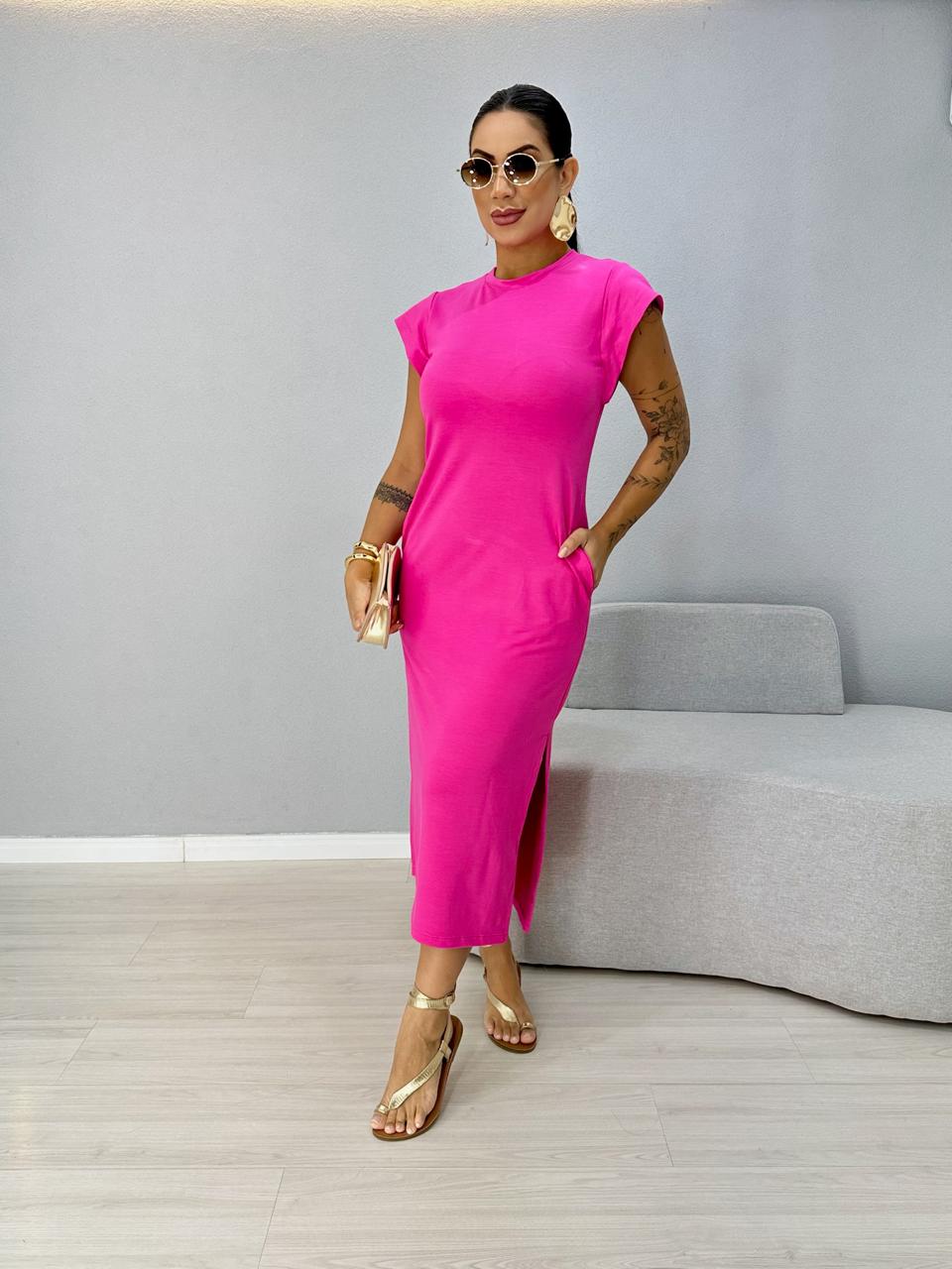 Busto 72 cm (tecido com elastano), cintura 86 cm, quadril 100 cm e comprimento 119 cm;